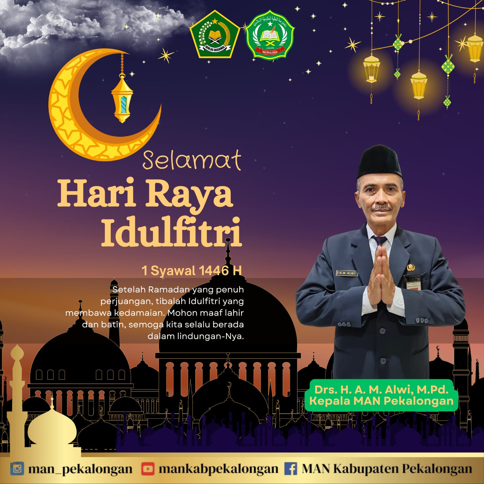 Segenap Civitas Akademik MAN Pekalongan mengucapkan Selamat Hari Raya idul Fitri 1Syawal 1446 H