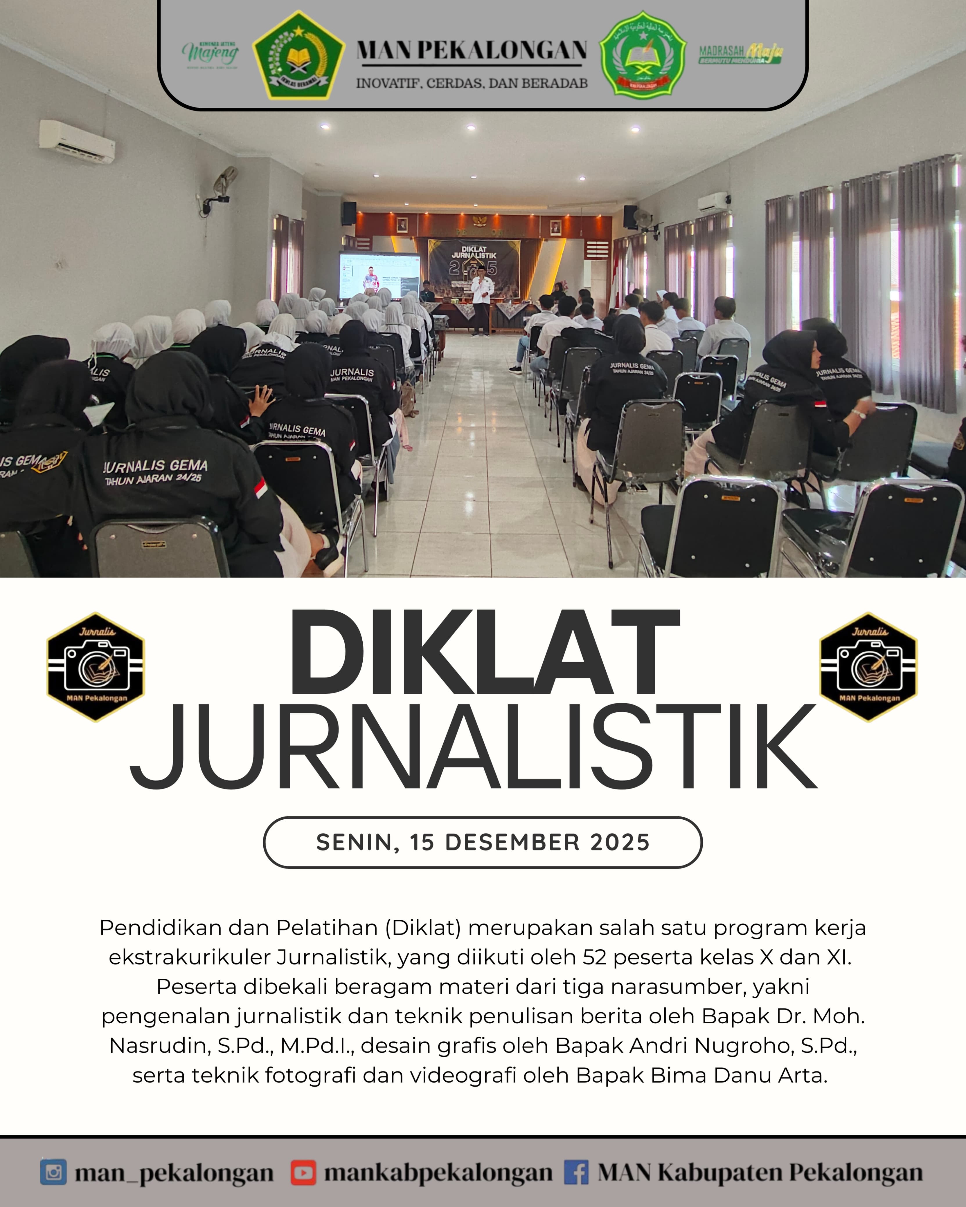 Pendidikan dan Pelatihan (Diklat) Jurnalistik MAN Pekalongan Kedungwuni-Ekstrakurikuler Jurnalistik melaksanakan kegiatan Pendidikan dan Pelatihan (Diklat) pada Senin, 15 Desember 2025. K [...]