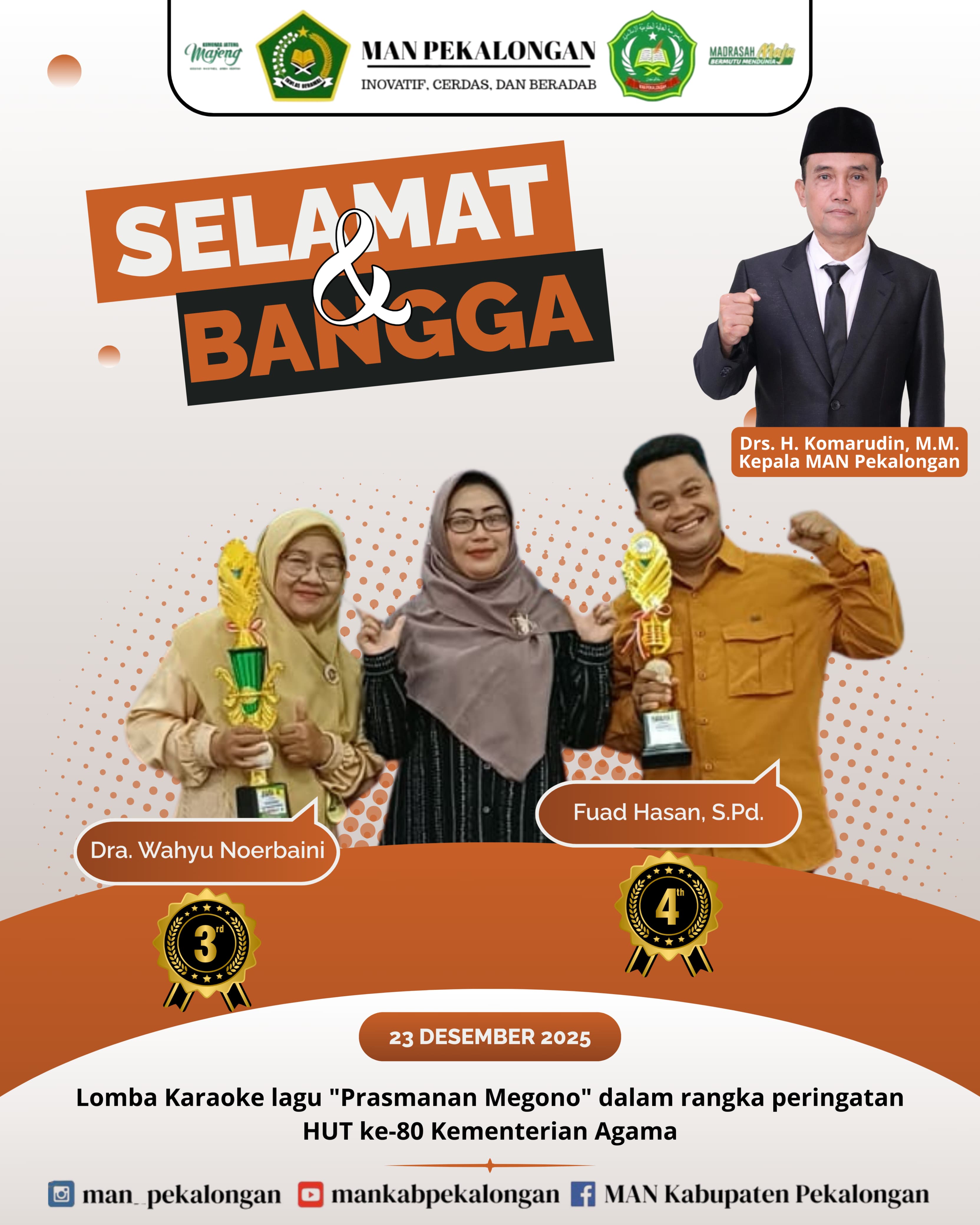 *Dua Guru MAN Pekalongan Meraih Juara Lomba Karaoke Lagu "Prasmanan Megono"* Kajen-MAN Pekalongan meraih juara Lomba Karaoke Lagu "Prasmanan Megono" dalam rangka mempe [...]