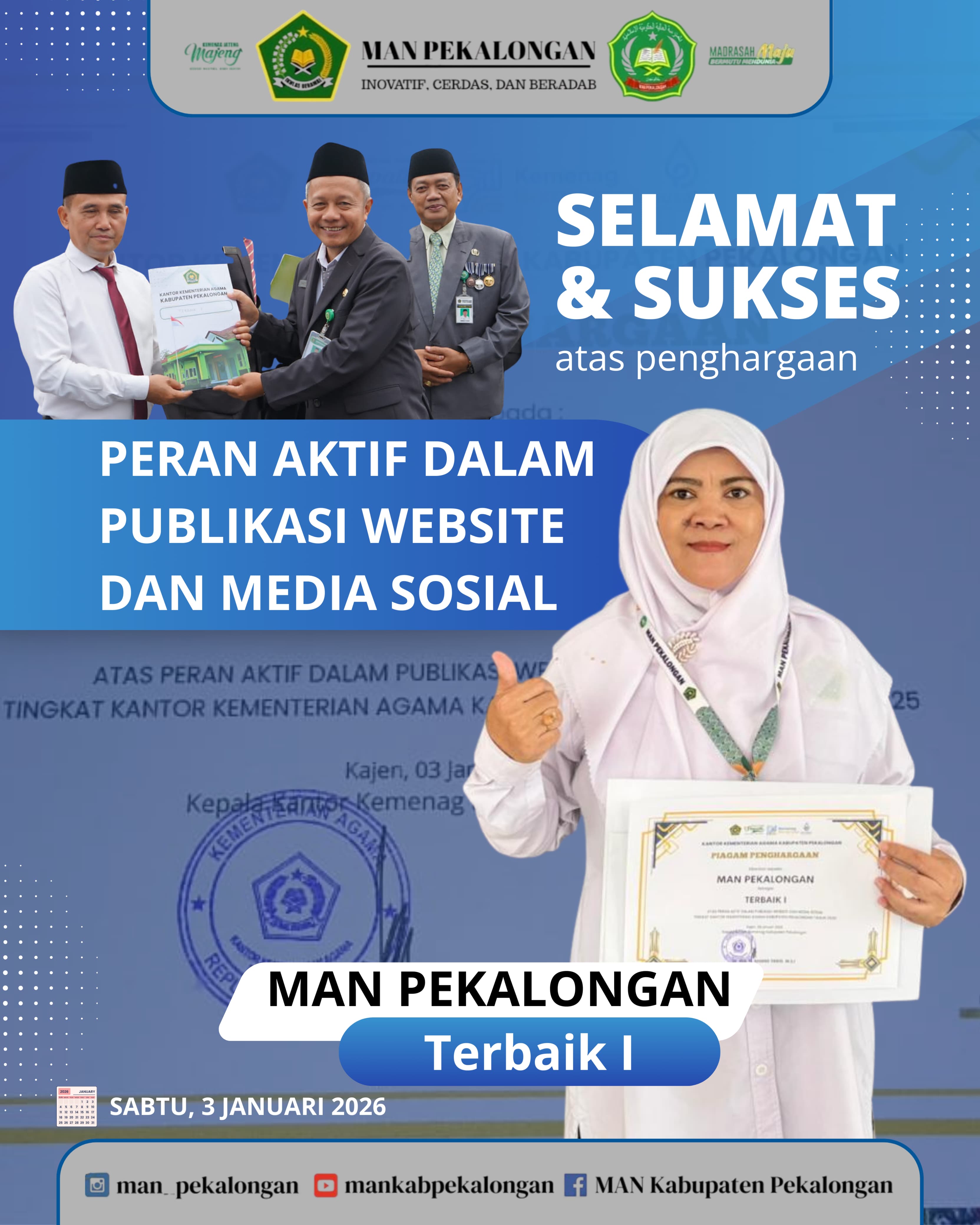 Selamat kepada Tim Humas MAN Pekalongan atas penghargaan Terbaik 1 Peran Aktif dalam Publikasi Website dan Media Sosial tingkat Kantor Kementrian Agama Kabupaten Pekalongan Sem [...]