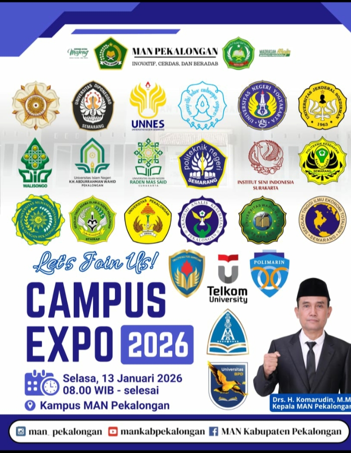 Campus Expo 2026 KEDUNGWUNI-SENIN, 12 JANUARI 2026 MAN Pekalongan akan menyelenggarakan kegiatan Campus Expo 2026 pada Selasa, 13 Januari 2026 pukul 08.00 WIB - selesai. Rencananya, stan kampus ak [...]