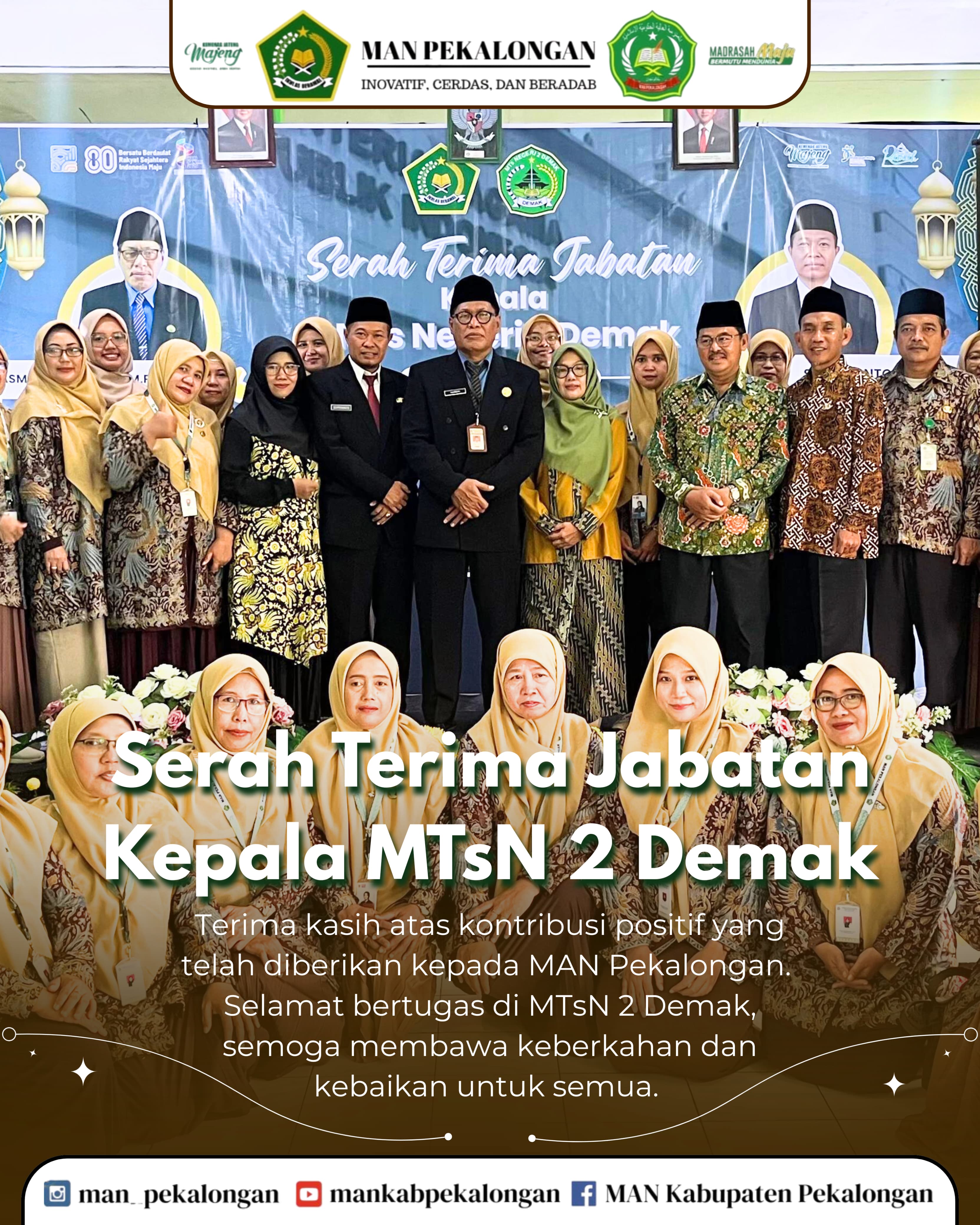 *Keluarga Besar MAN Pekalongan Hadiri Serah Terima Jabatan Bapak Supriyanto di MTsN 2 Demak* Pekalongan –Keluarga besar MAN Pekalongan tiba di MTsN 2 Demak pada Kamis (13/11/2025) s [...]