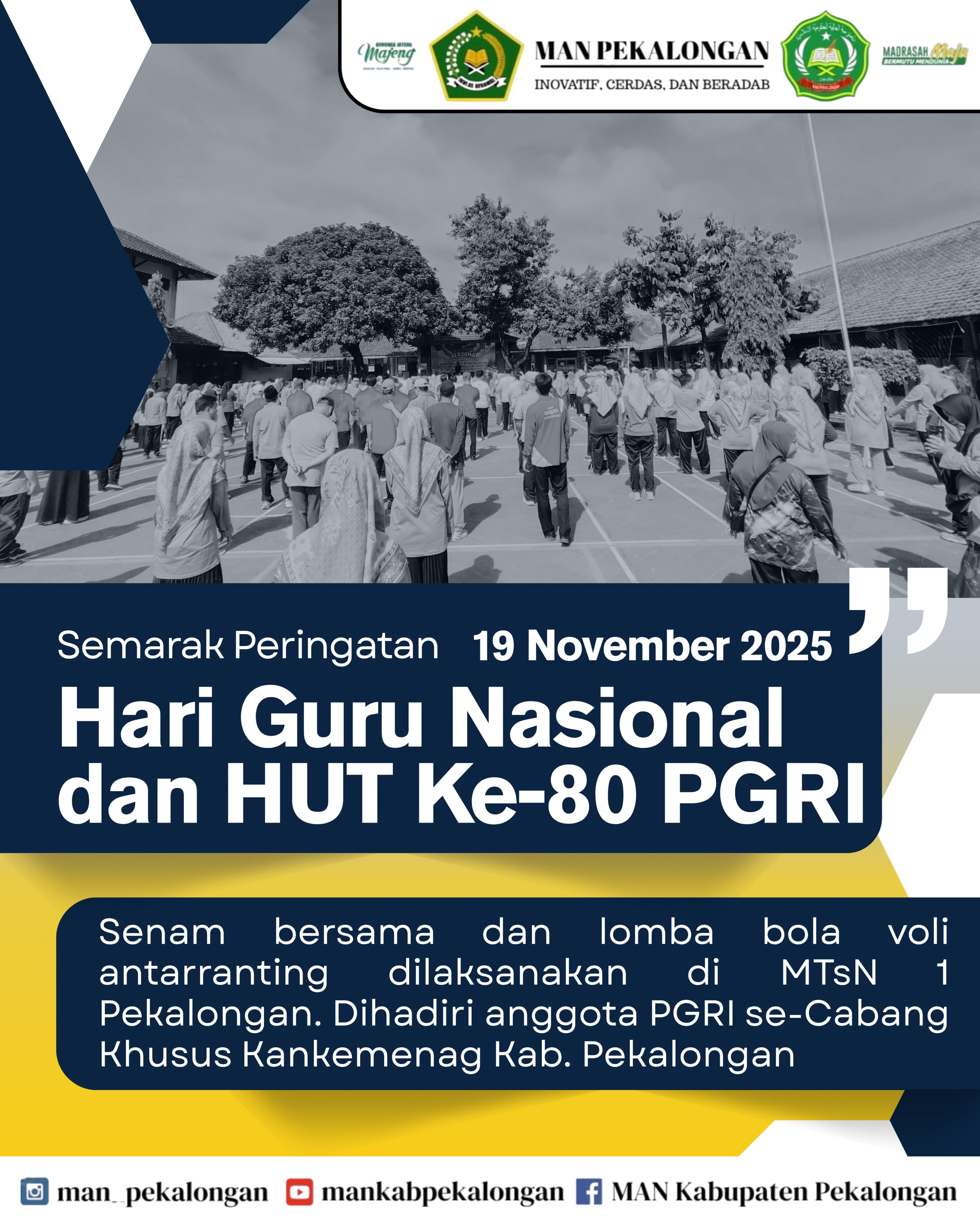 Upacara Hari Guru Nasional 2025. Kedungwuni - Upacara peringatan Hari Guru Nasional 2025 dilaksanakan di Lapangan MAN Pekalongan, Senin (25/11/2025). Upacara yang diikuti oleh segenap dewan guru, t [...]