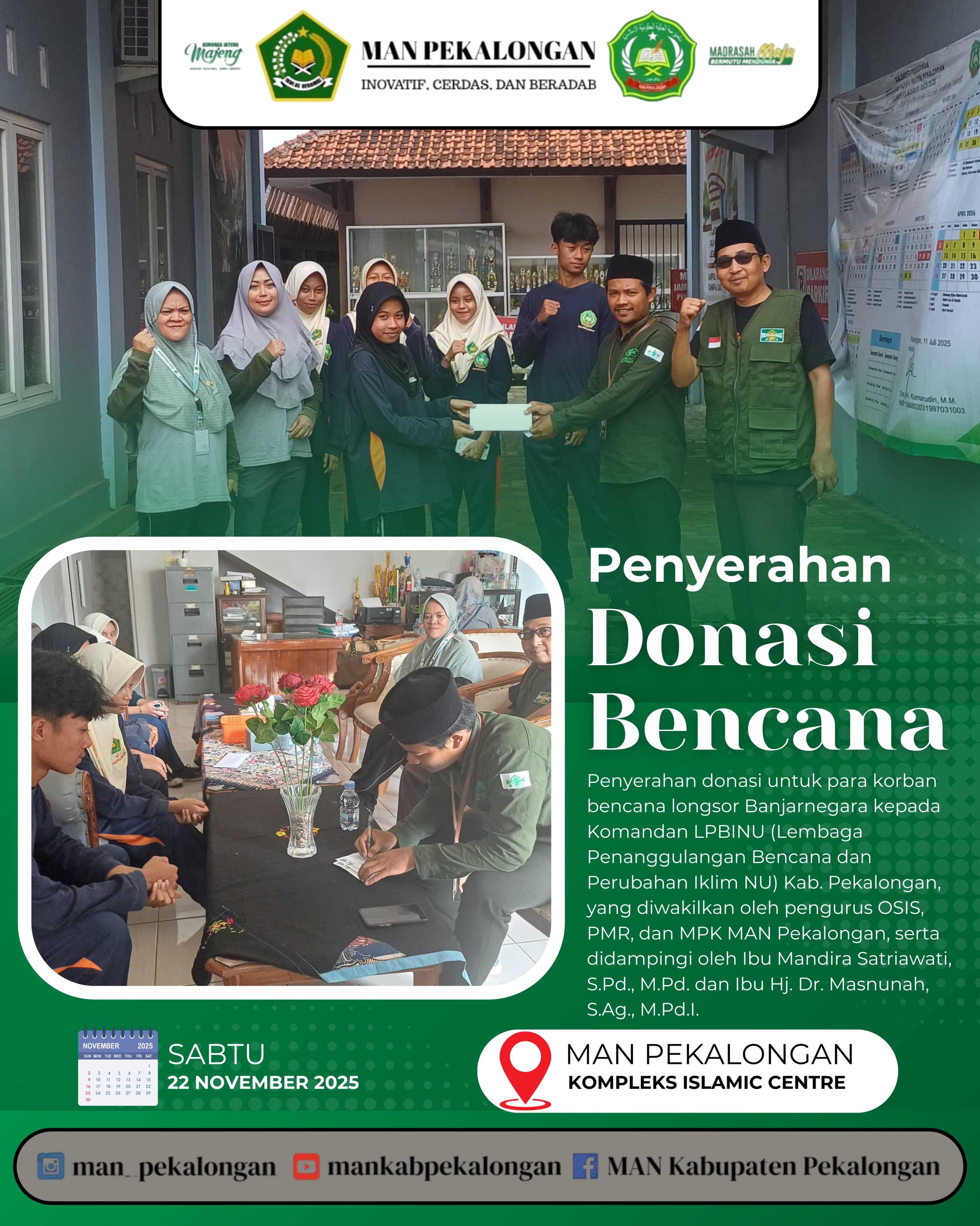 Penyerahan donasi kepada korban bencana longsor Banjarnegara Kedungwuni - Sabtu, 22 November 2025 MAN Pekalongan mengadakan penyerahan donasi untuk para korban bencana longsor Banjarnegara [...]