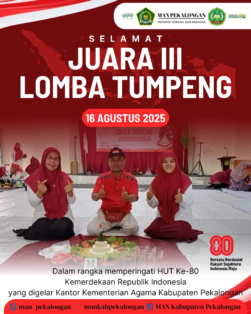Selamat MAN Pekalongan Juara III Lomba Tumpeng dalam rangka memperingati HUT Ke 80 Kemerdekaan Republik Indonesia, yang digelar oleh Kantor Kementrian Agama Kabupaten Pekalongan [...]