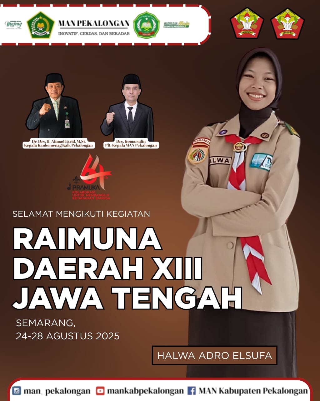 Selamat kepada ananda Halwa Adro Elsufa atas terpilihnya untuk mengikuti kegiatan Raimuna Daerah XIII Jawa Tengah yang akan dilaksanakan pada tanggal 24-26 Agustus 2025 di Semarang. Raimu [...]