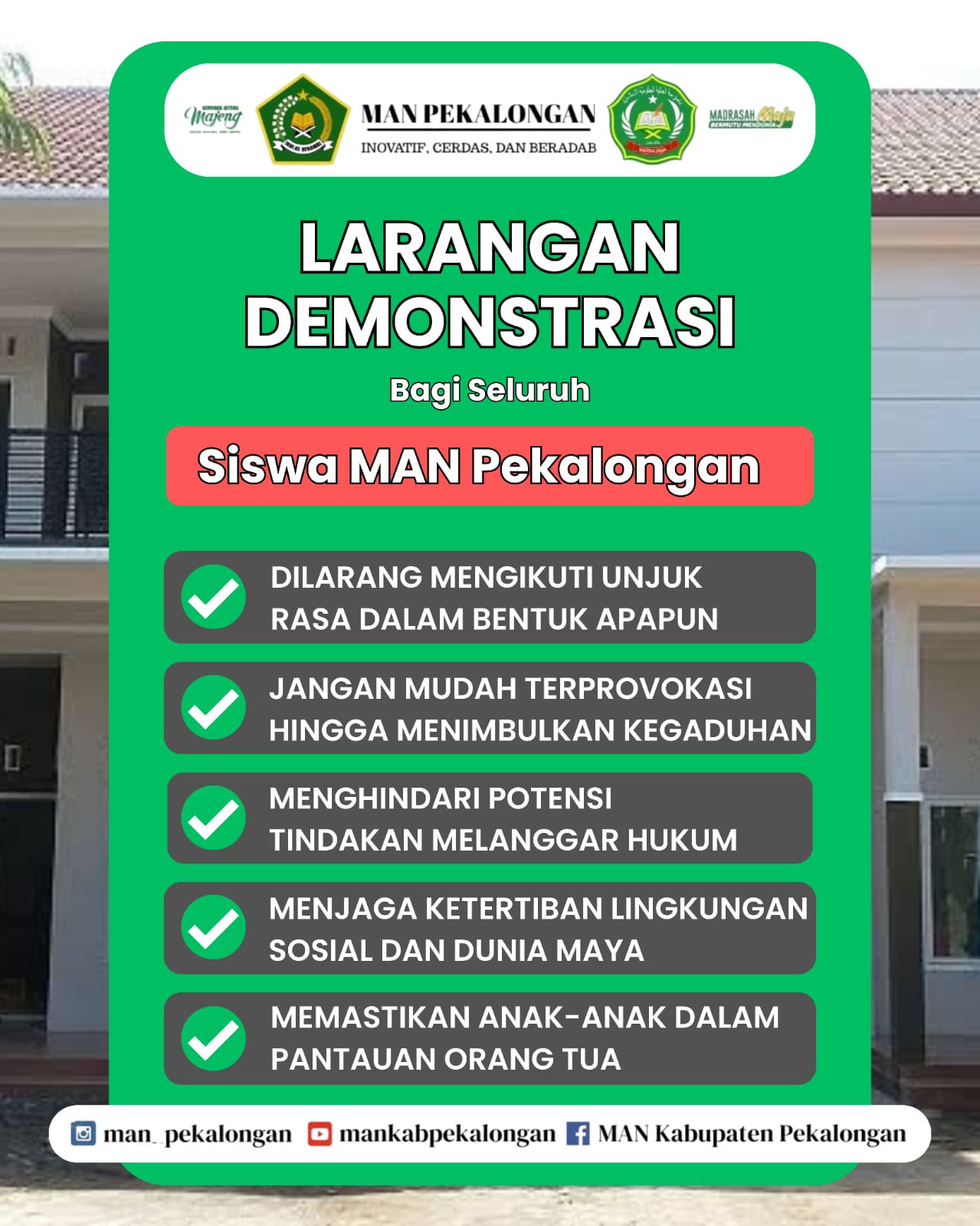 Larangan Demonstrasi Bagi Siswa MAN PEKALONGAN