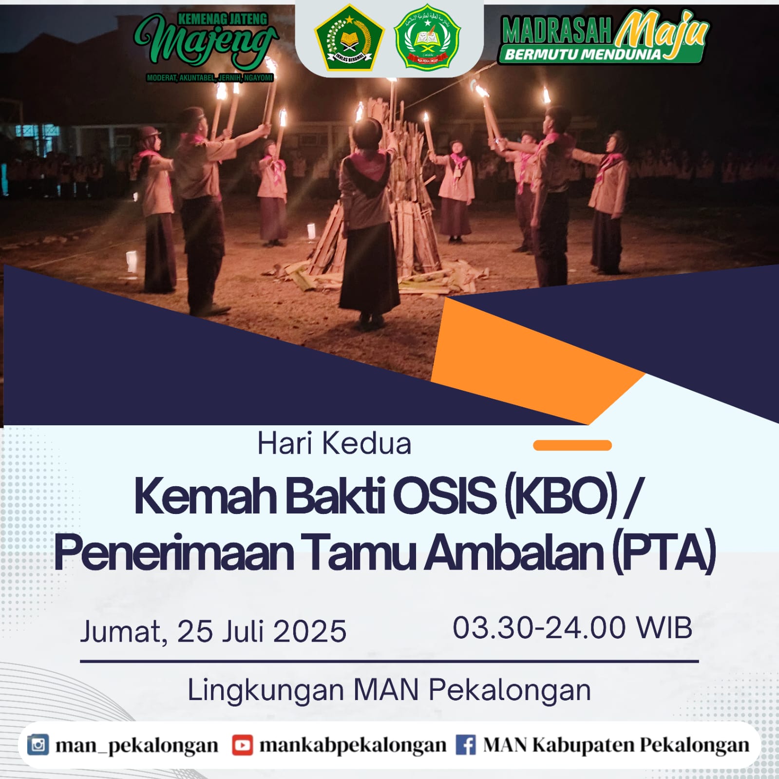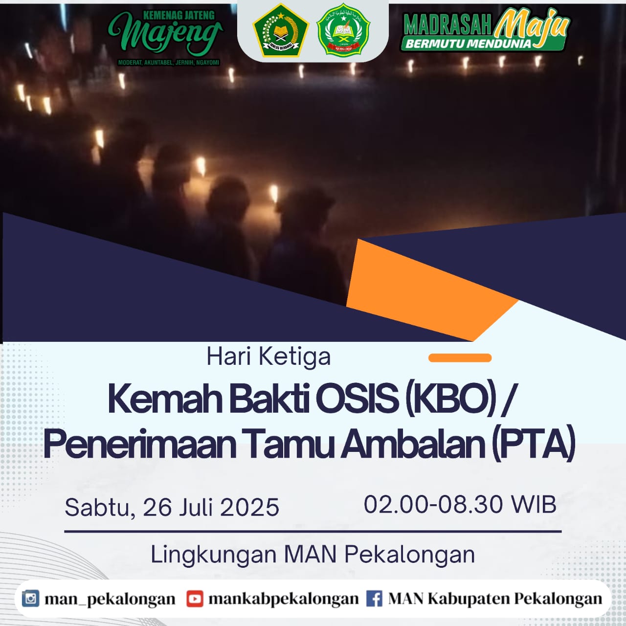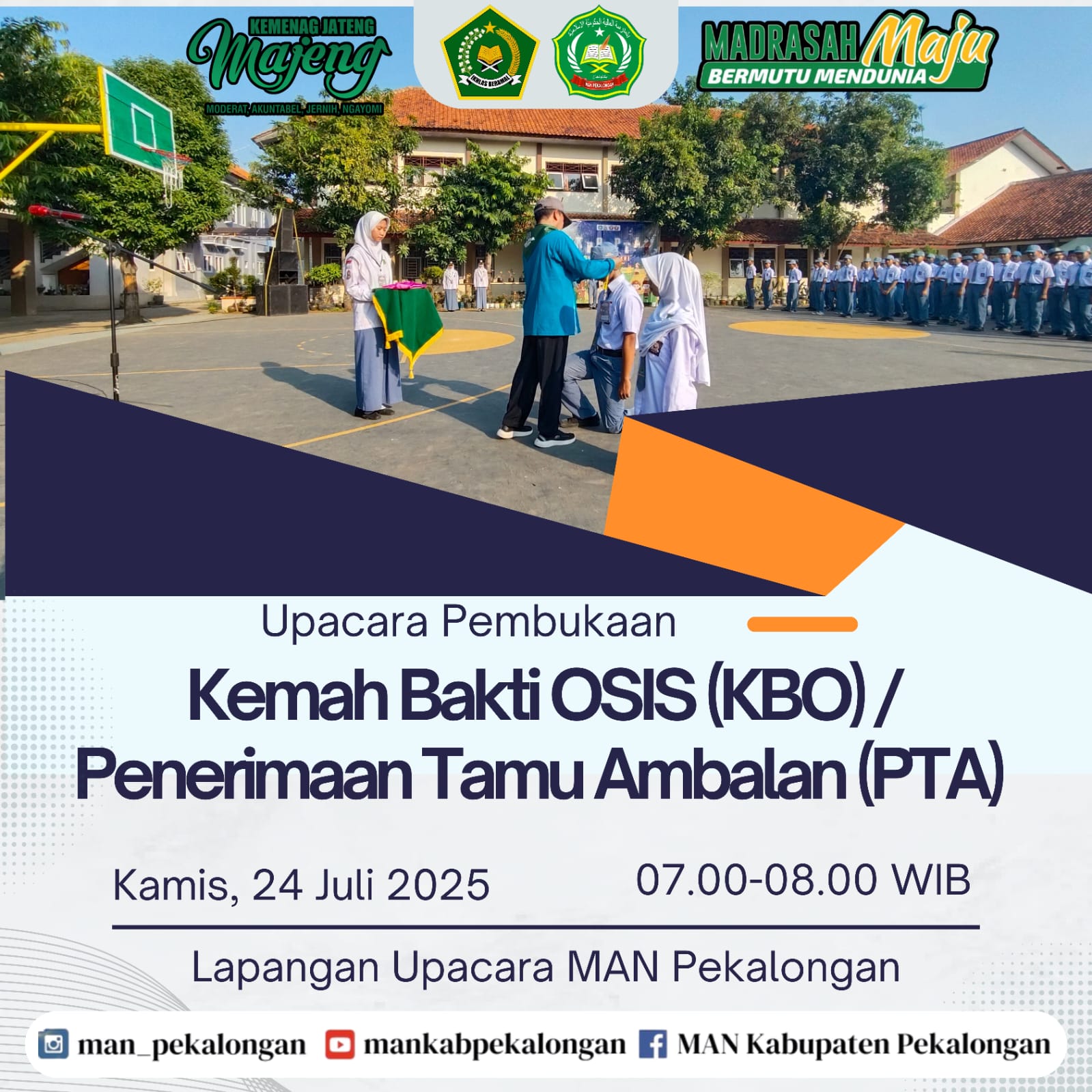 Upacara Pembukaan KBO/PTA 2025 KEDUNGWUNI-KAMIS, 24 JULI 2025 MAN Pekalongan melaksanakan Kemah Bakti OSIS (KBO) / Penerimaan Tamu Ambalan (PTA) mulai Kamis, 24 Juli 2025 hingga Sabtu, [...]
