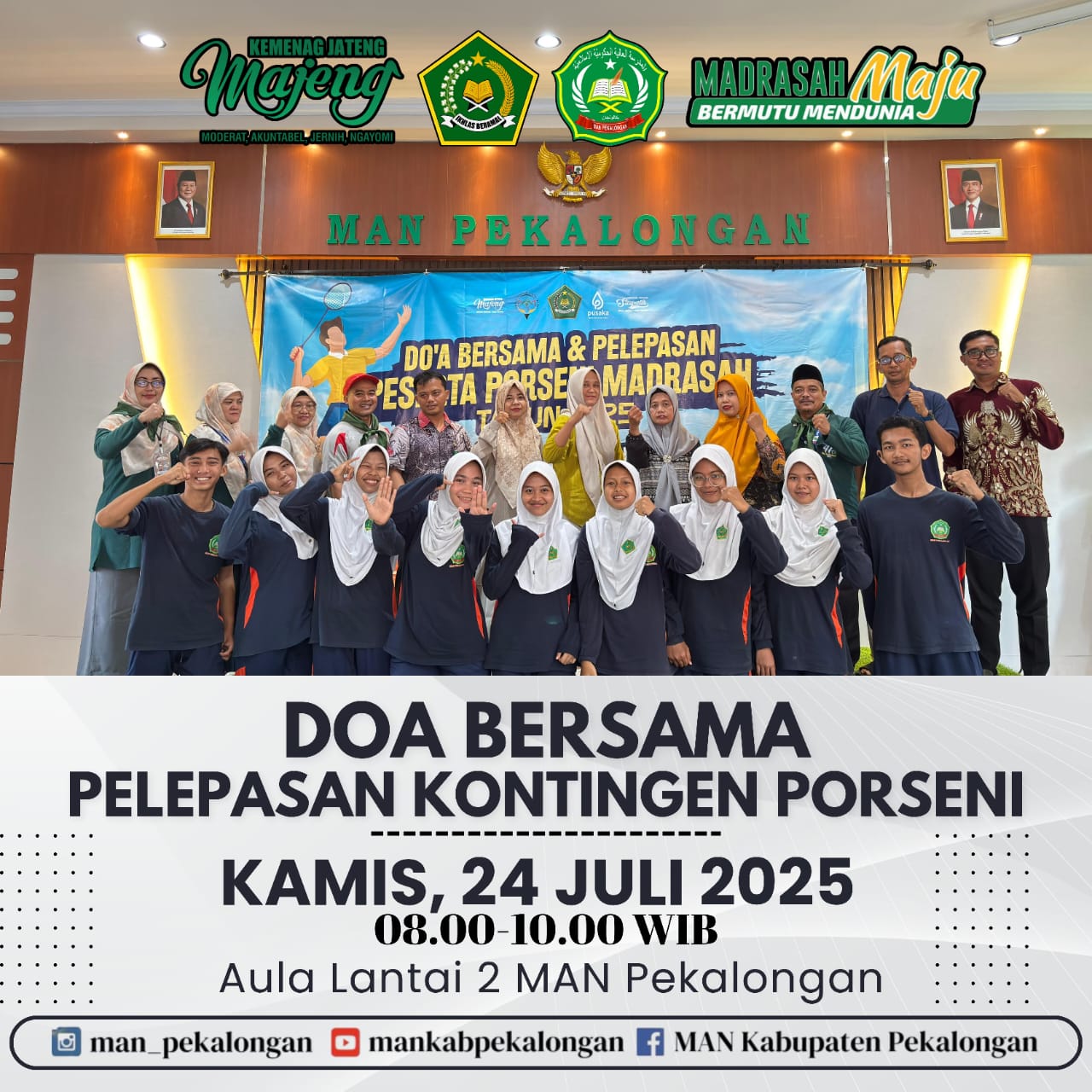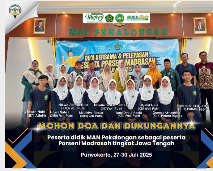 Mohon Doa Restu dan Dukungannya untuk kontingen MAN PEKALONGAN sebagai peserta PORSENI Madrasah tingkat Jawa Tengah 2025. Semoga diberikan kemudahan dan kesuksesan serta hasil yang terbaik untuk mengh [...]