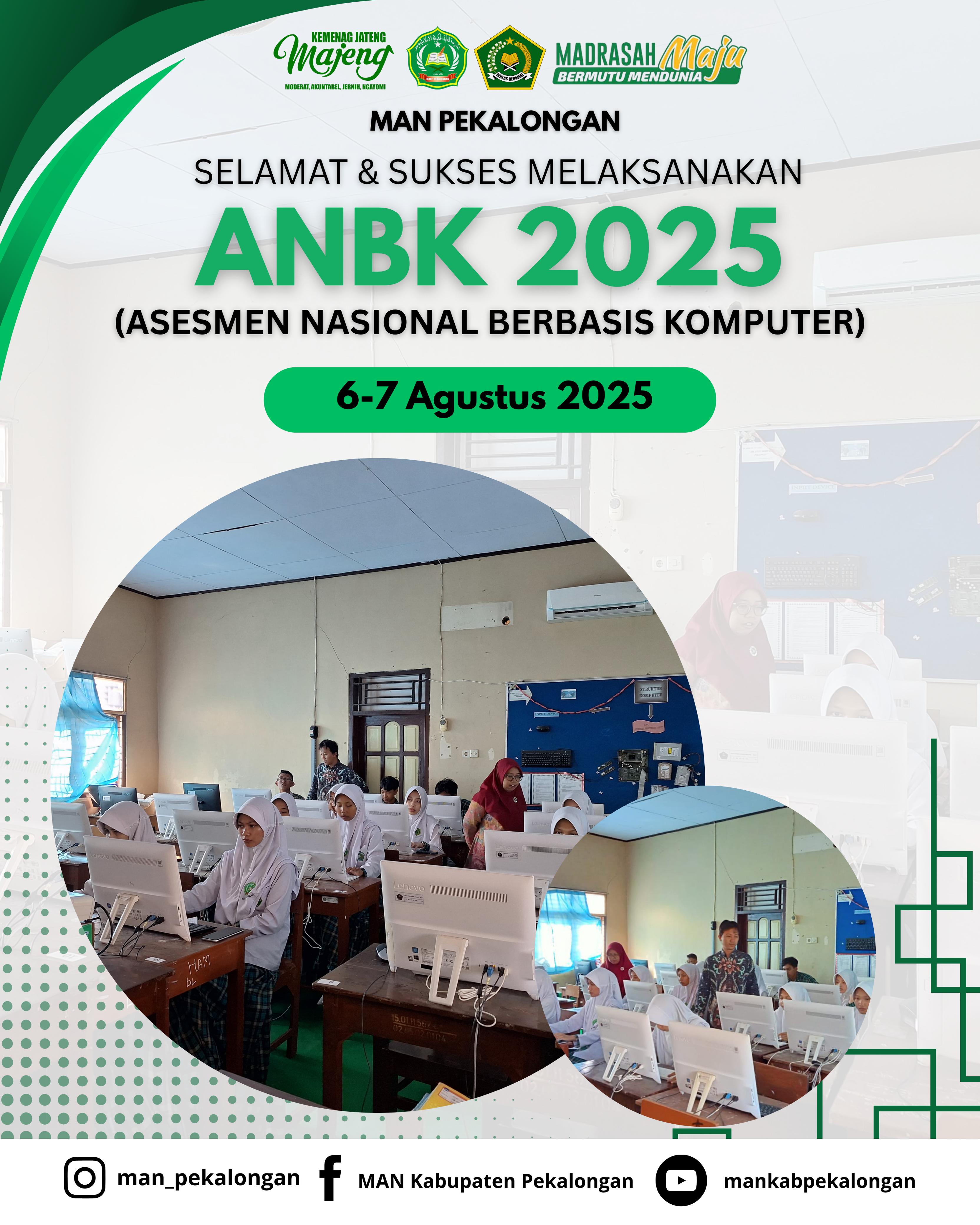Selamat dan sukses ANBK 2025 Kedungwuni-Rabu, 6 Agustus 2025. 45 Siswa MAN Pekalongan mengikuti Asesmen Nasional Berbasis Komputer (ANBK) gelombang 2. ANBK gelombang 2 dilaksanakan pada hari Rabu d [...]